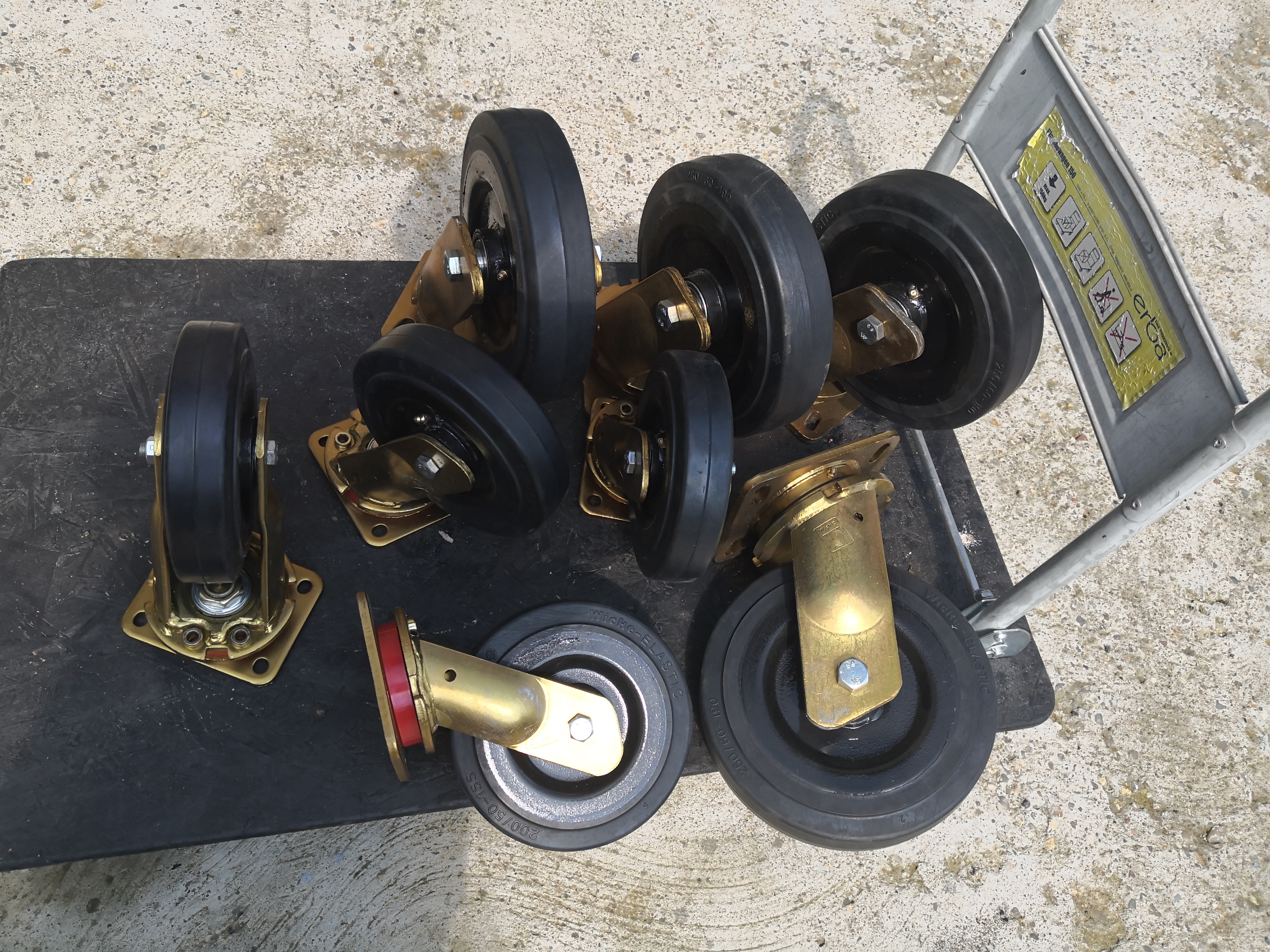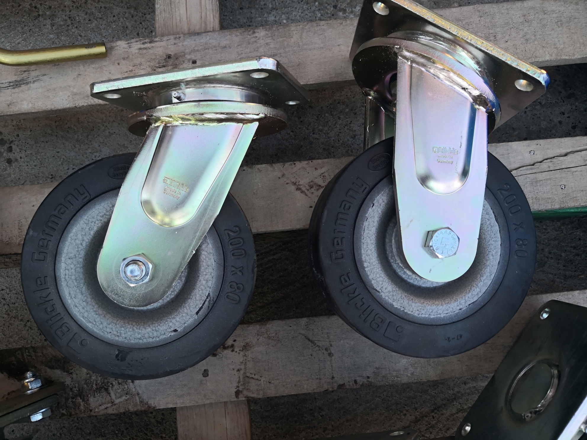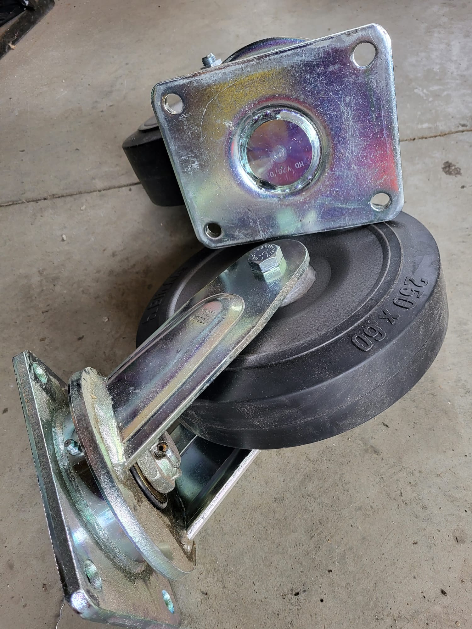 Roti industriale pivotante cu furca si flanse de prindere.